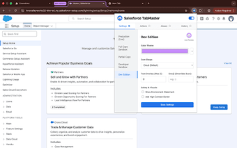 Salesforce TabMaster هو ملحق لـ Chrome مصمم لتبسيط إدارة بيئات Salesforce المتعددة. يتميز بتجميع علامات التبويب تلقائيًا الذي ينظم علامات التبويب الخاصة بك بناءً على نوع البيئة، مثل الإنتاج، أو صندوق الرمل، أو إصدار المطور. هذا يلغي متاعب الفرز اليدوي ويساعد المستخدمين على التعرف بسرعة على أي منظمة Salesforce يستخدمونها حاليًا.